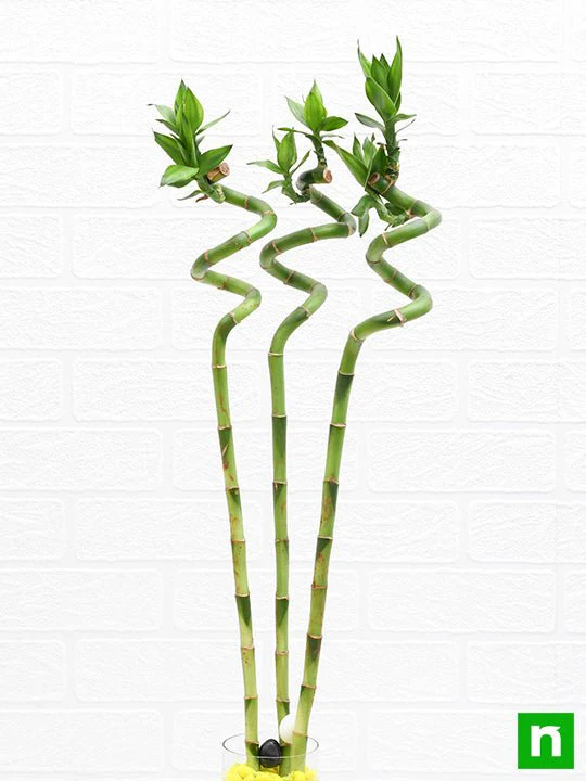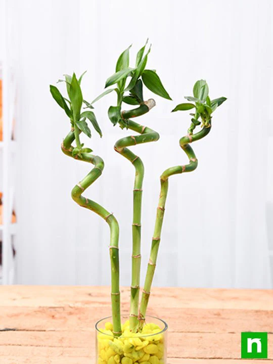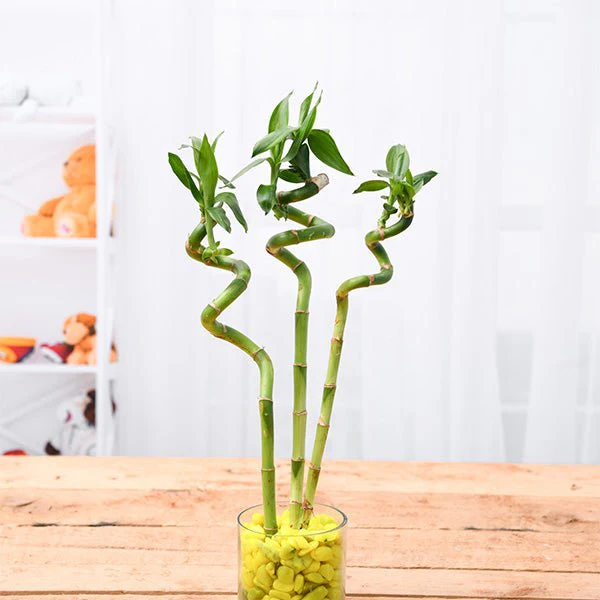 A beautiful arrangement of five vibrant Lucky Bamboo stalks displayed in a stylish glass container with decorative stones, symbolizing balance, health, and positive energy. Easy to maintain and thriving in water with low to moderate light, it’s perfect for desks, homes, or offices. This elegant plant makes a thoughtful gift that brings a sense of calm, harmony, and good fortune to any space. 🌿