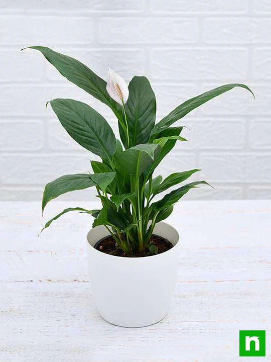 An elegant, low-maintenance indoor plant with glossy green leaves and graceful white blooms. Thrives in low to medium light and helps freshen indoor air, making it perfect for homes and offices. 🌿